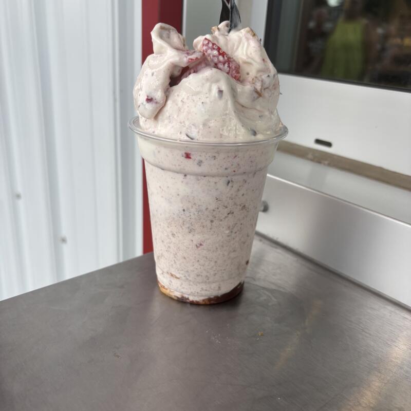 Vanilla Ice Cream mixed with chocolate shell, Spanish nuts, and caramel!